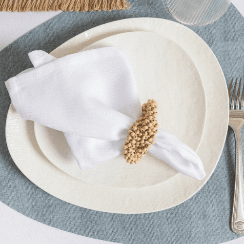 מארז BAILEY – מפת שולחן, מפיות וחבקים | לבן