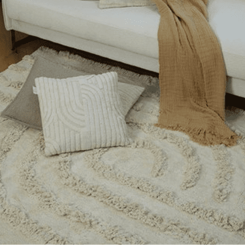מיוצר בטכניקת HI & LOW – חיתוך מיוחד לשטיח שנותן לו גבהים שונים ומעניק לו מרקם היוצר תחושה מקרקעת וידוע בעולם הפסיכולוגיה כתורם להירגעות ומיינדפולנס.